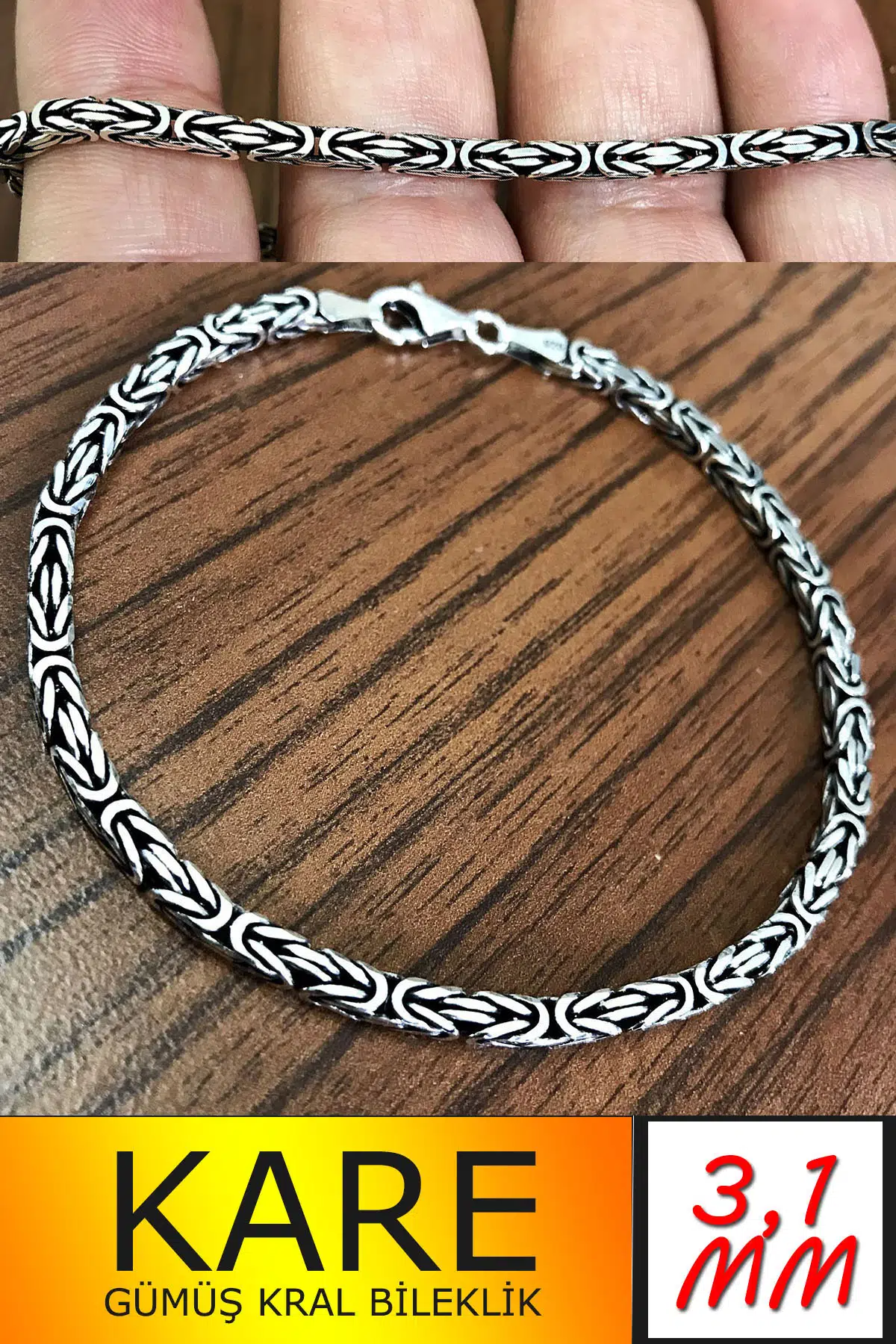 Etiketler | 925 Ayar Gümüş Erkek Bileklik Kare Kral Model 3,1mm Genişlik 20cm Uzunluk msb08 |