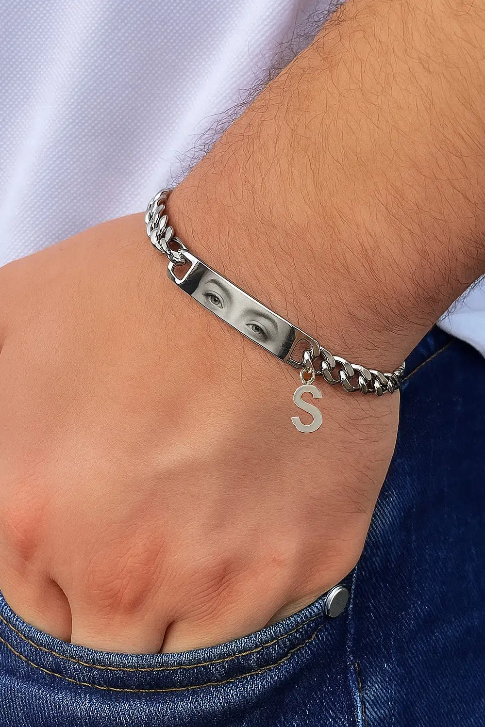 Göz Resim Baskılı ve Harf eklemeli Paslanmaz Çelik Bileklik