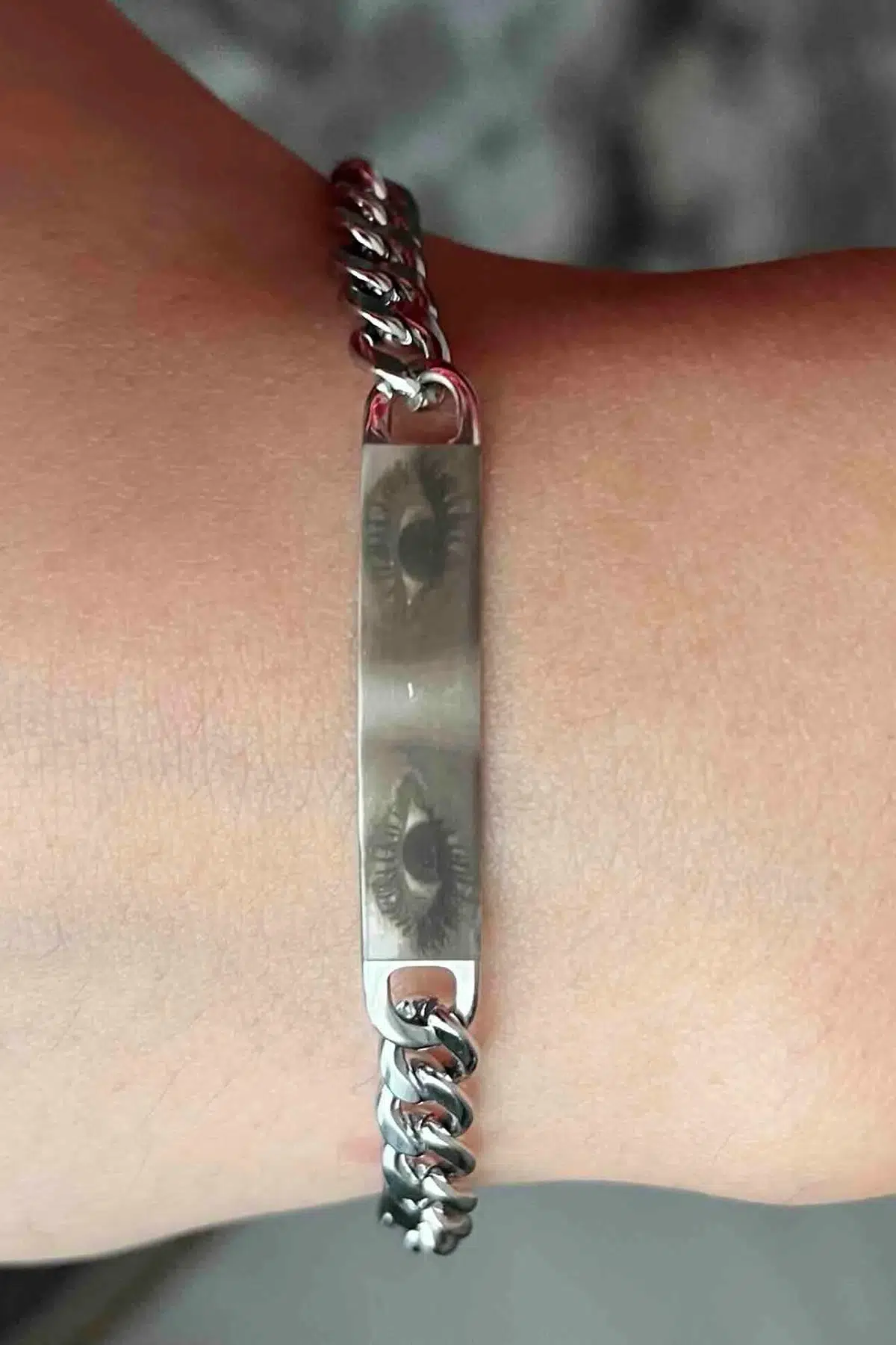 Göz Resim Baskılı ve Harf eklemeli Paslanmaz Çelik Bileklik