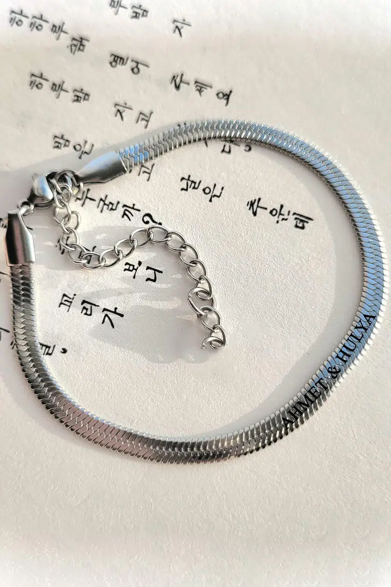 Etiketler | Kişiye Özel İsim Tarih Yazılı Yassı Yılan Paslanmaz Çelik Bileklik scb25yt |