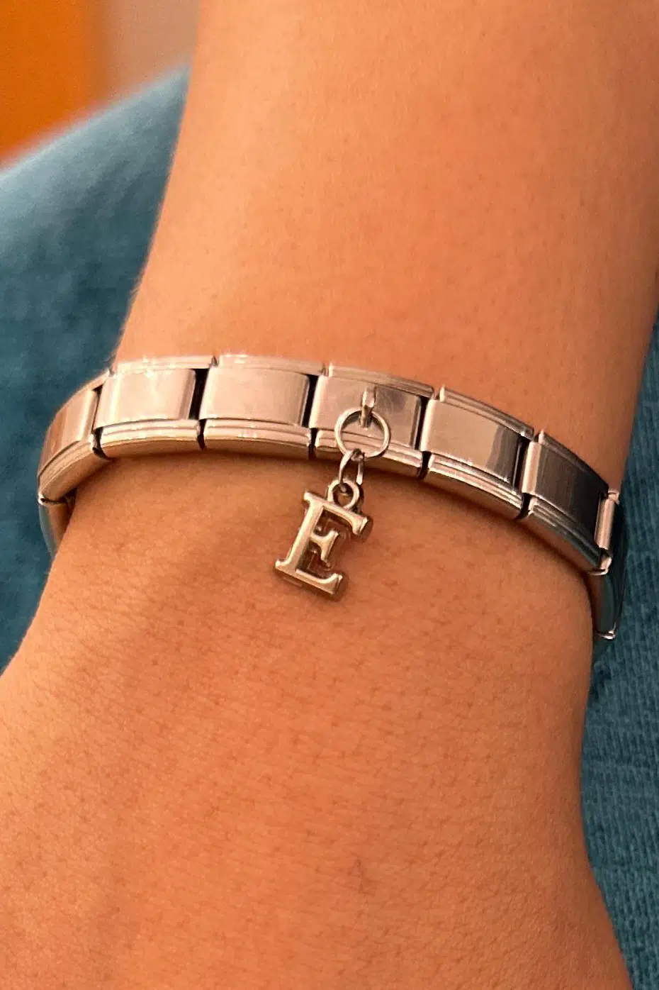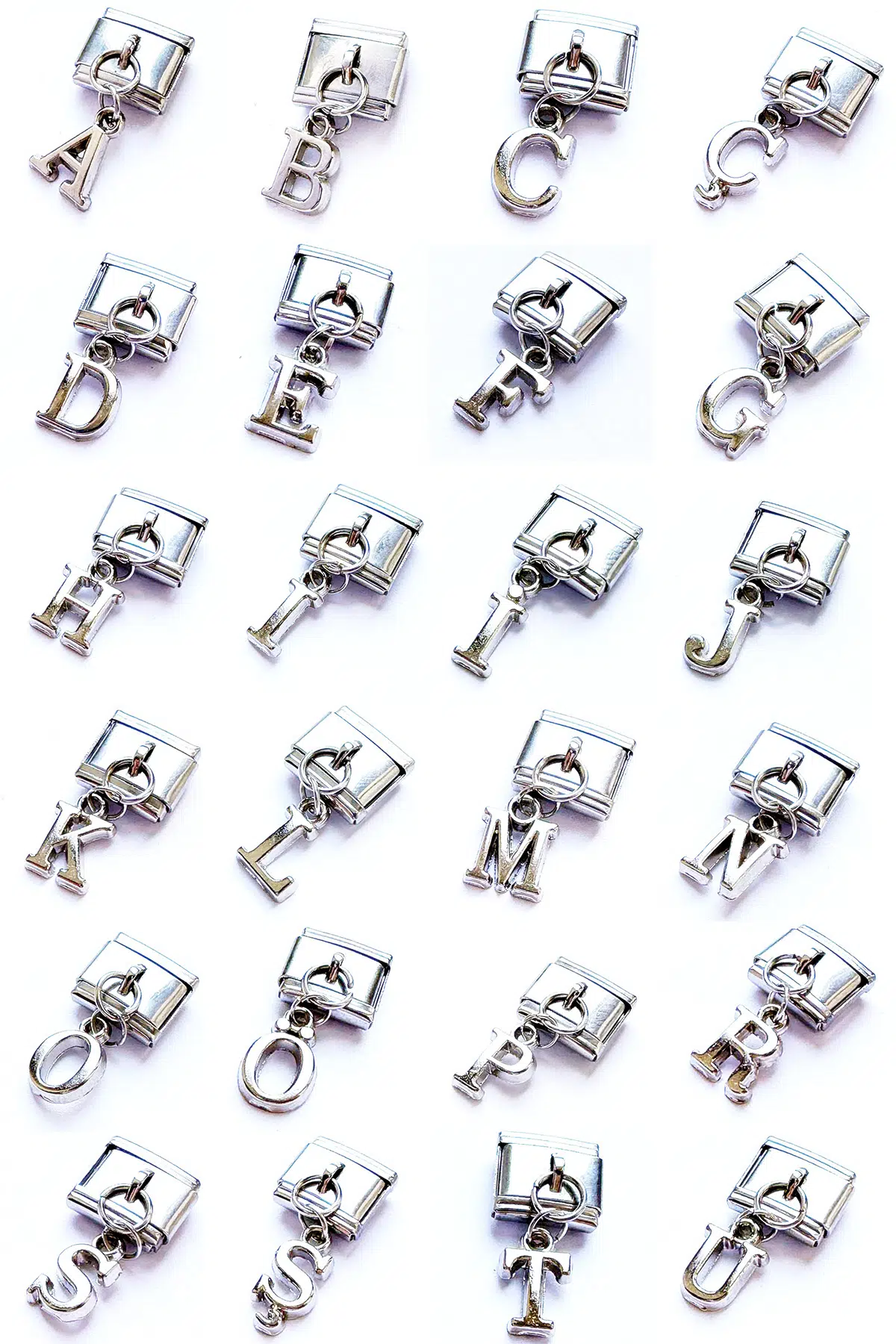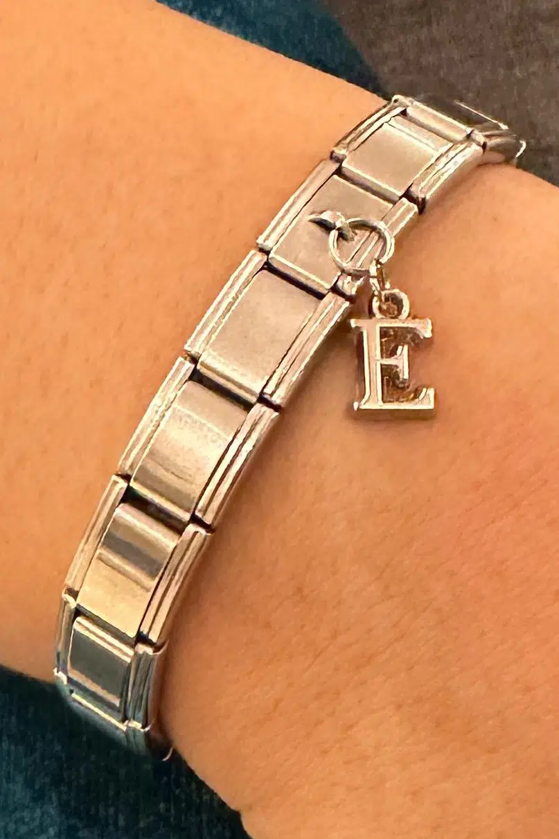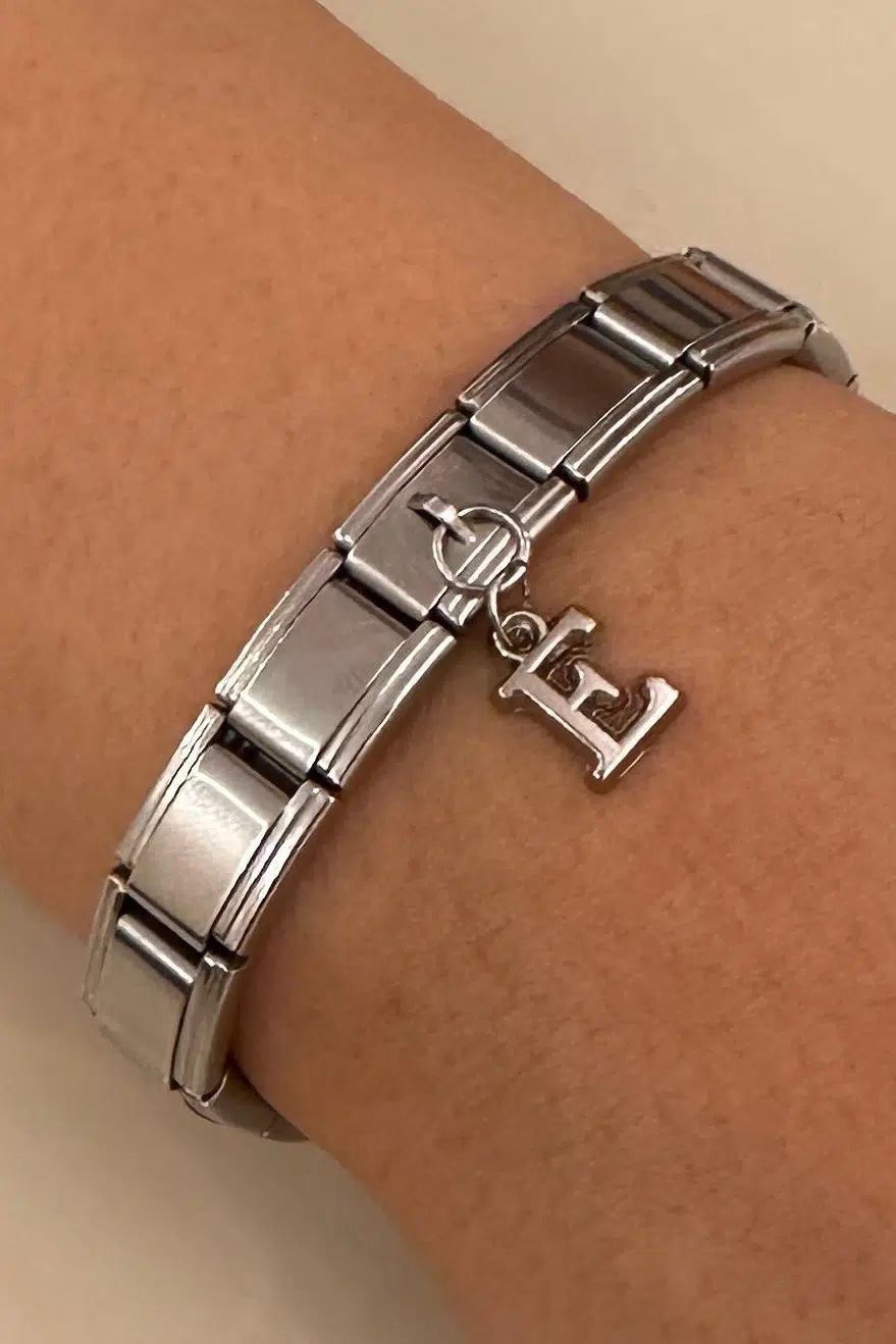 Sadece harf kısmı bijuteridir. Onun haricinde Charm ve halkalar paslanmaz çeliktir.