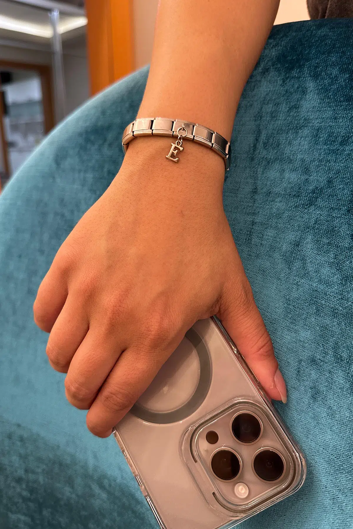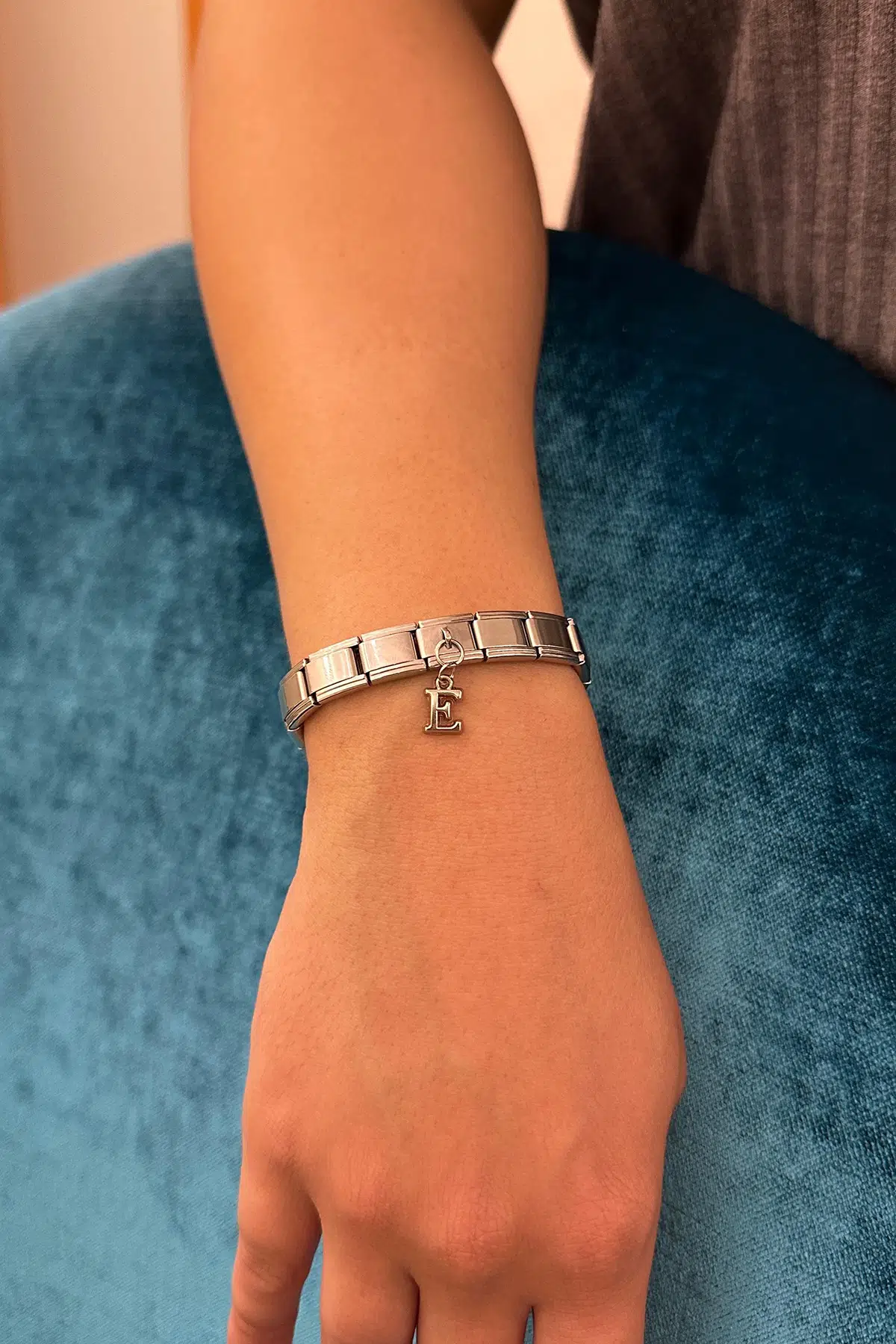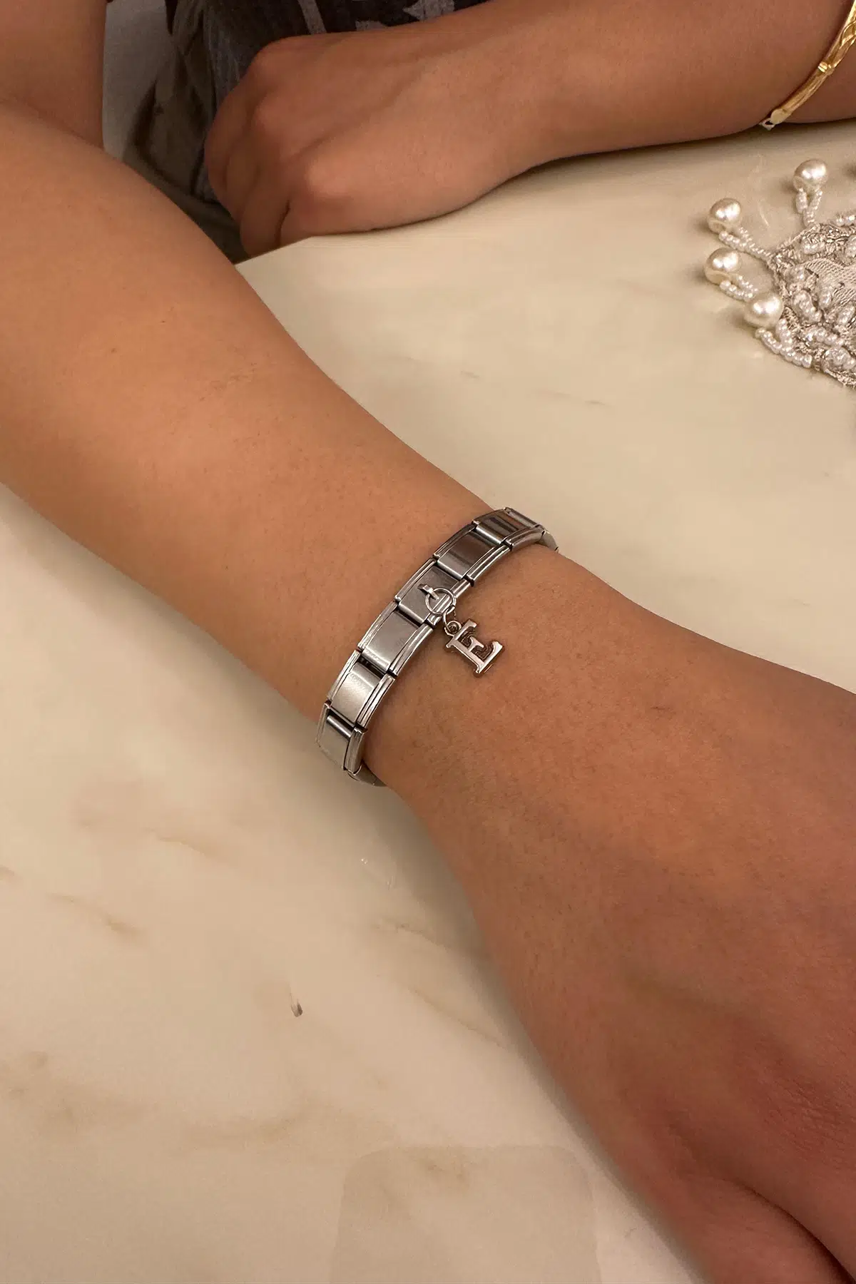 Sadece harf kısmı bijuteridir. Onun haricinde Charm ve halkalar paslanmaz çeliktir.