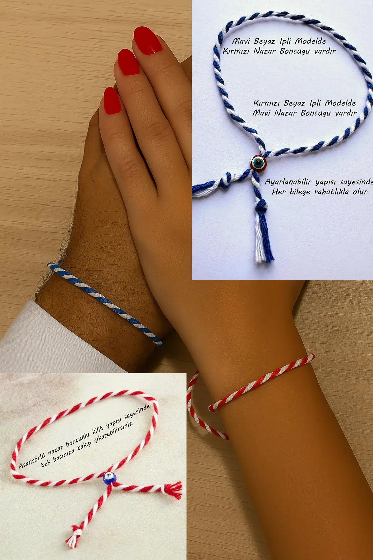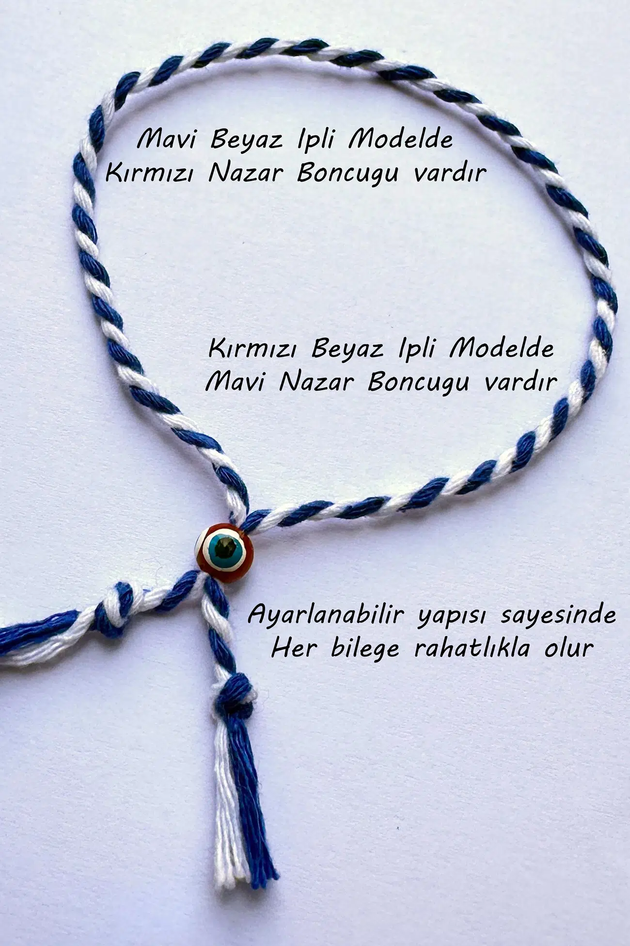 1 adet kırmızı beyaz ipli, mavi nazar boncuklu bileklik