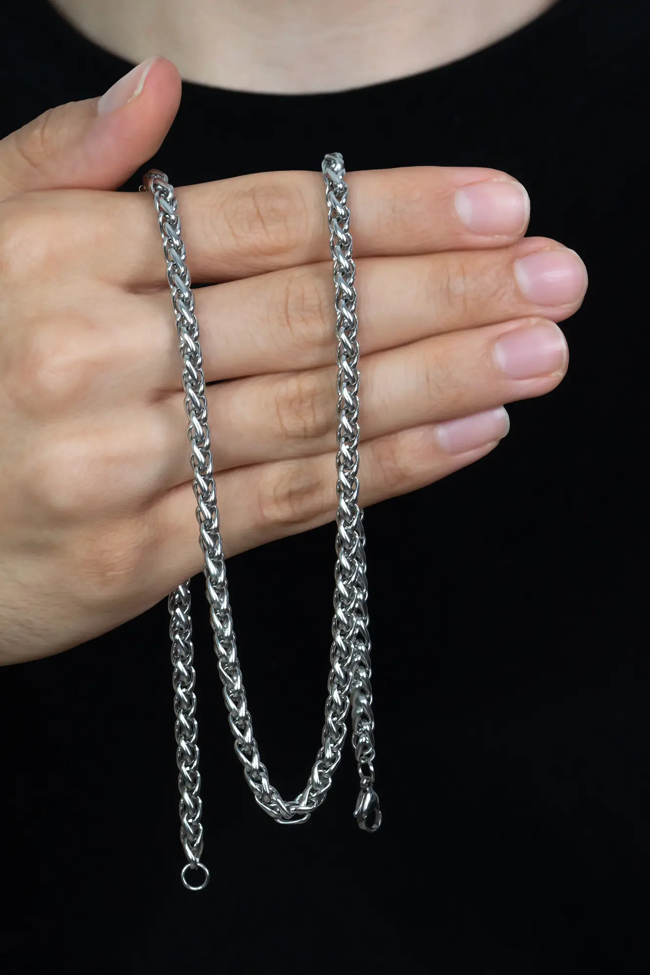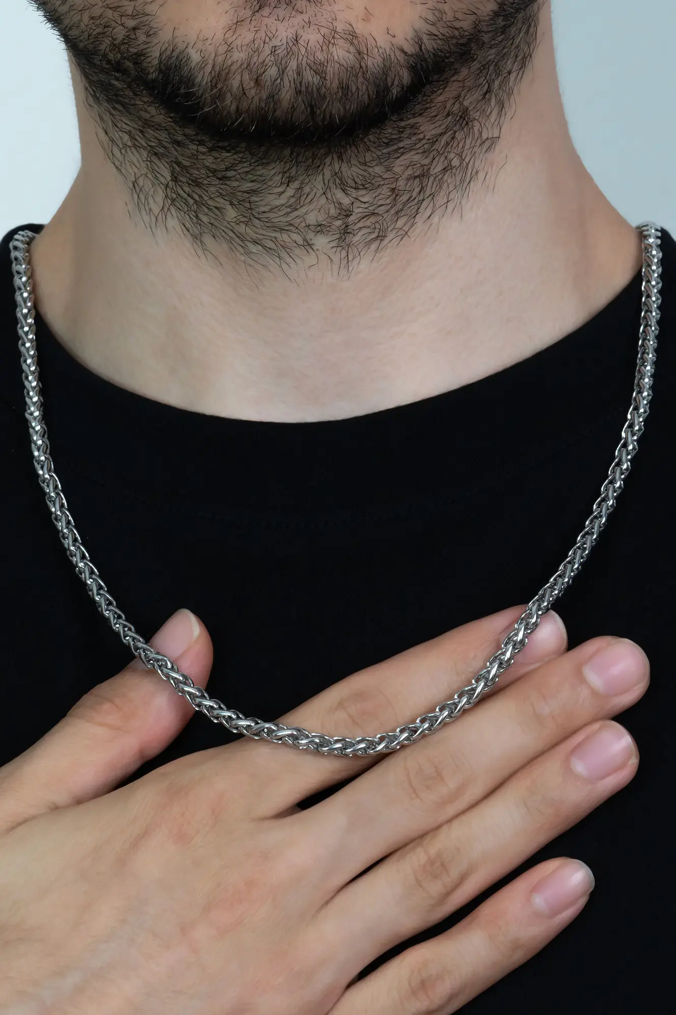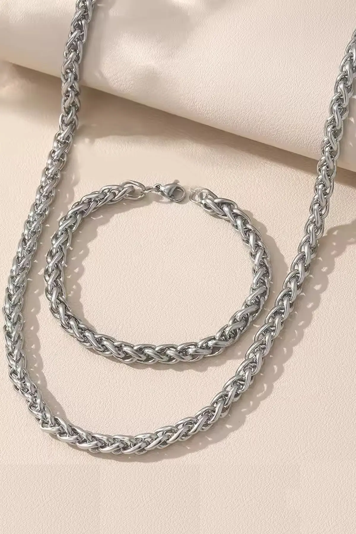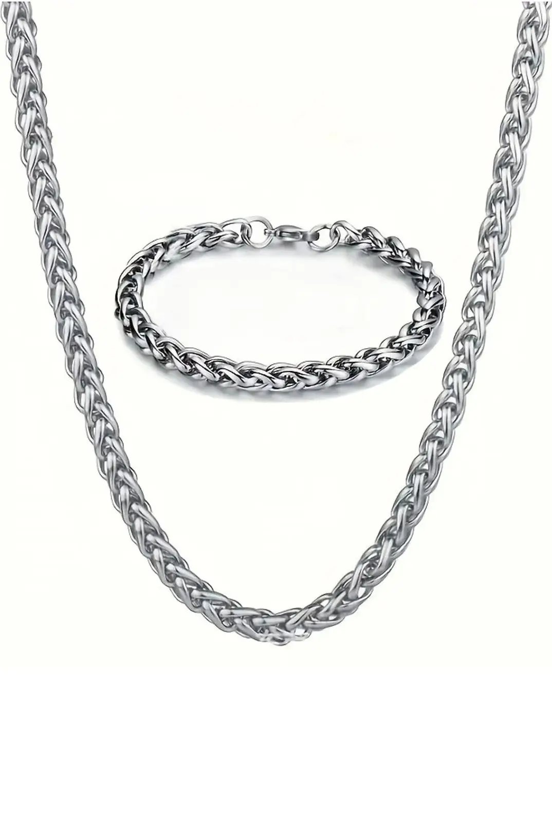 YUVARLAK TİLKİ KUYRUĞU 4 MM ERKEK ÇELİK KOLYE ZİNCİR VE BİLEKLİK SET